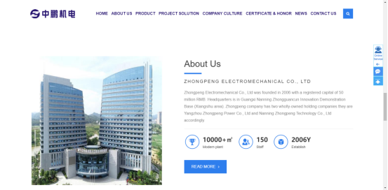 中鹏机电有限公司外贸英文独立平台网站在领导的关注中以及外贸部的精心设计下正式上线啦!