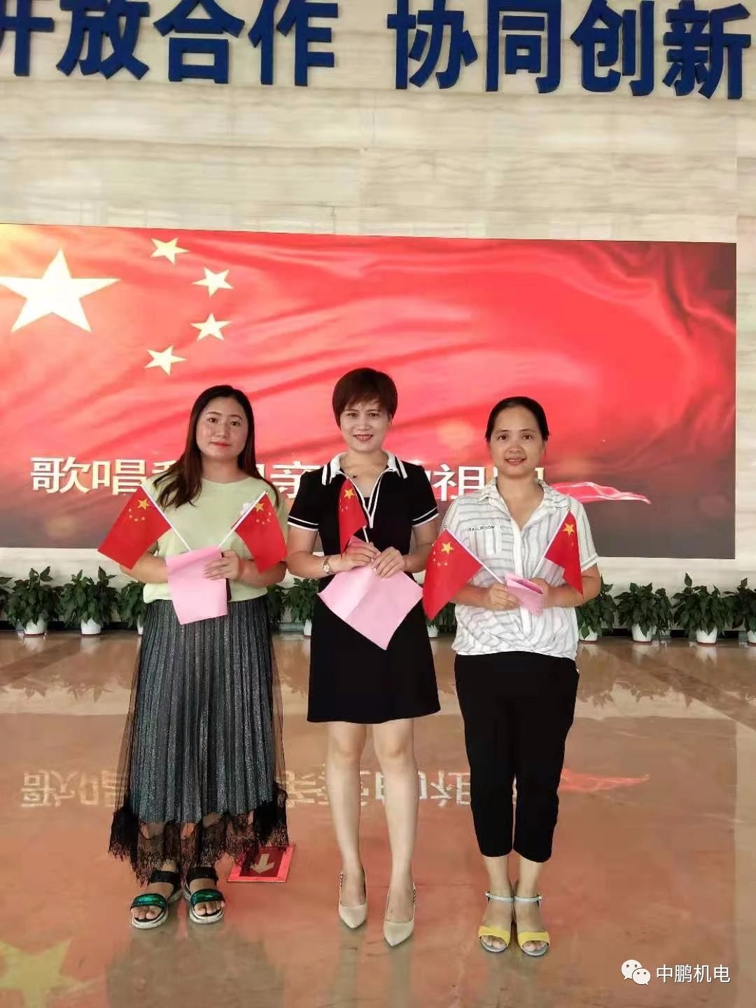 2019年9月30日,中鹏机电有限公司员工参加南宁.中关村创新示范基地(相思湖区)"迎国庆,唱红歌" ——(歌唱祖国)大合唱活动,庆祝中华人民共和国成立70周年,祝愿伟大祖国繁荣昌盛,国泰民安!