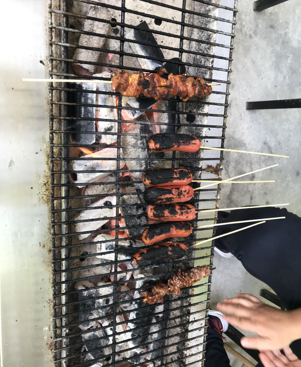 今天艳阳高照,也挡不住小伙伴们热情,一起忙前忙后,有烧火的、洗菜的、穿串的,整个活动现场洋溢着忙碌而又欢乐的气氛。大家准备食材一切就绪后,火炭也在印着红红的热光,大家跃跃欲试的轮番尝试烧烤,这时考验大家的烧烤技术的时候了,有些烤很漂亮,跟摆摊的有的一拼,有些....呃,画面太美我不敢想象。