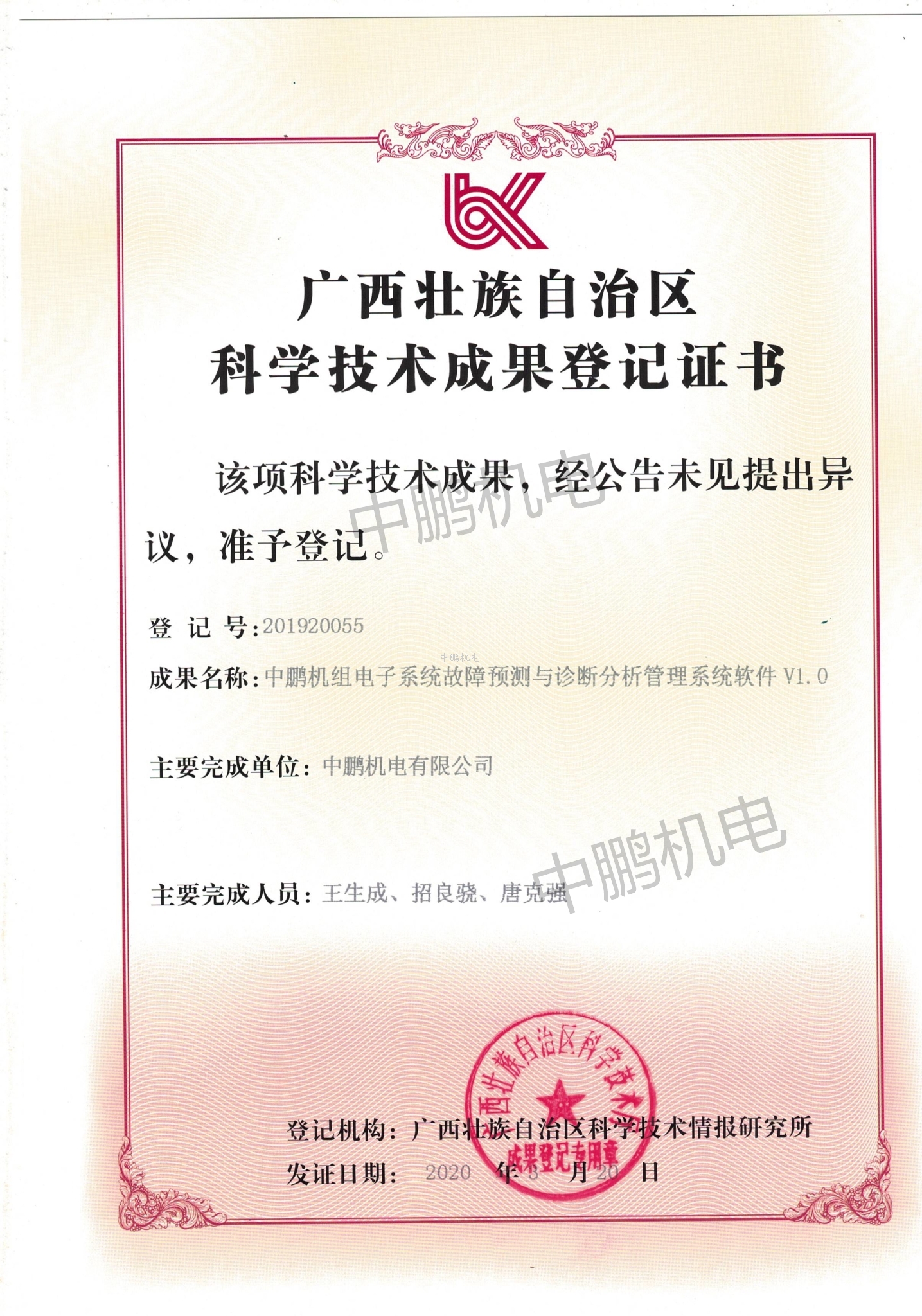 科学技术成果登记证书